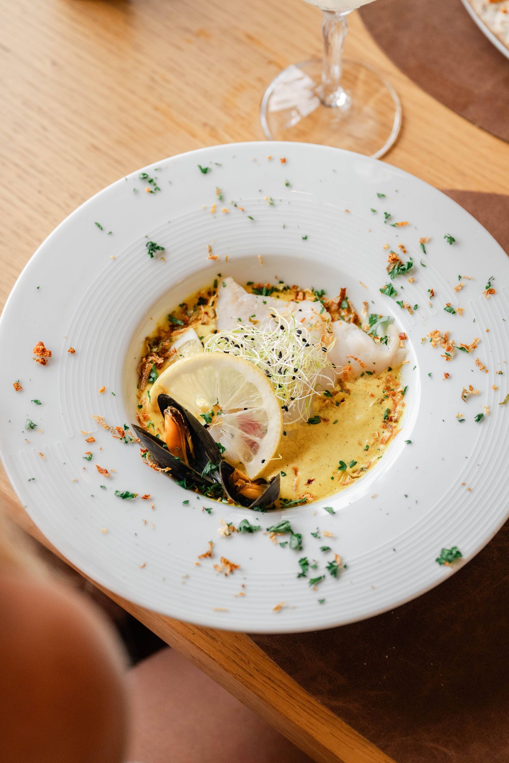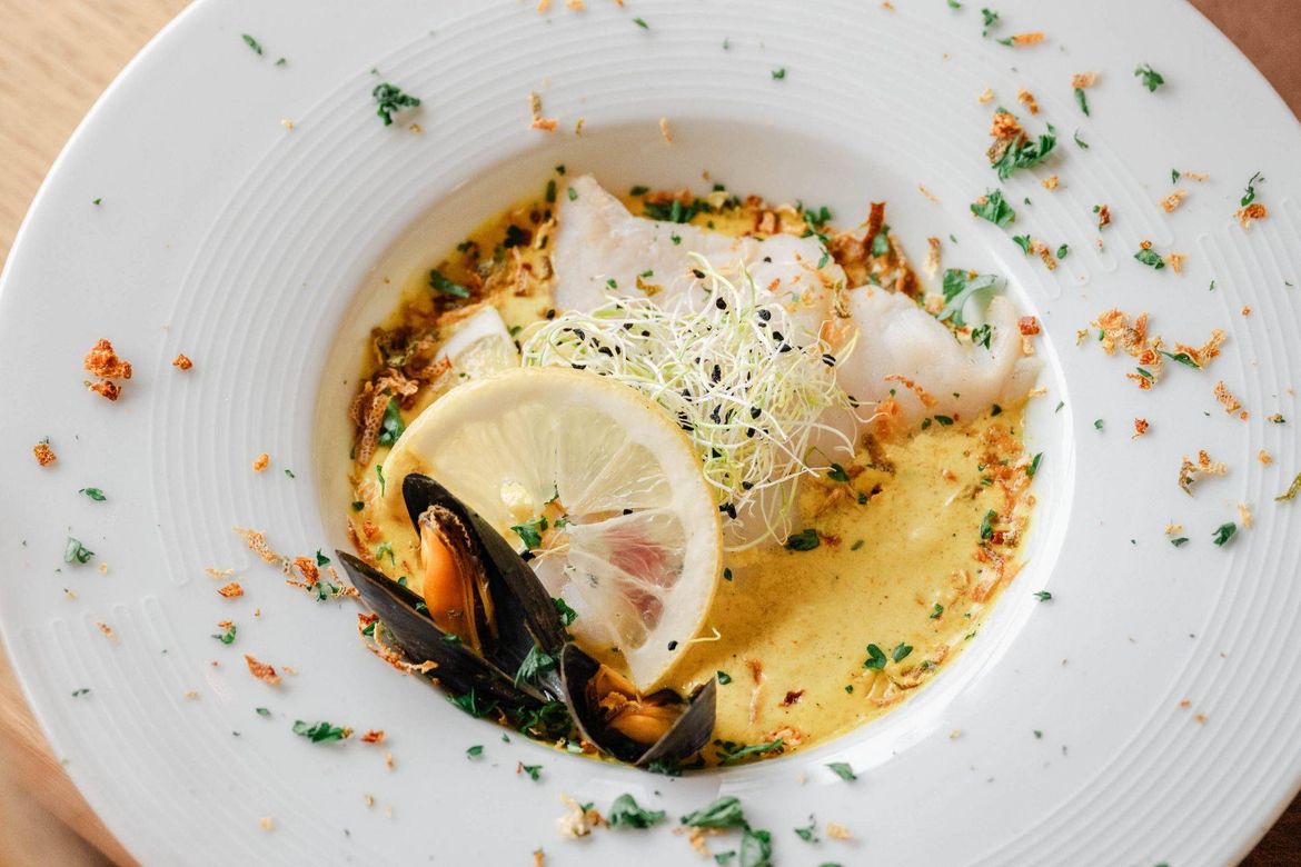 La carta combina grandes clásicos — mejillones a la marinera, fish & chips, cazuela de marisco — con propuestas más elaboradas como cheesecake de mar, raviolis de temporada o carnes seleccionadas. Y, por supuesto, el pescado del día, que varía según las mareas.