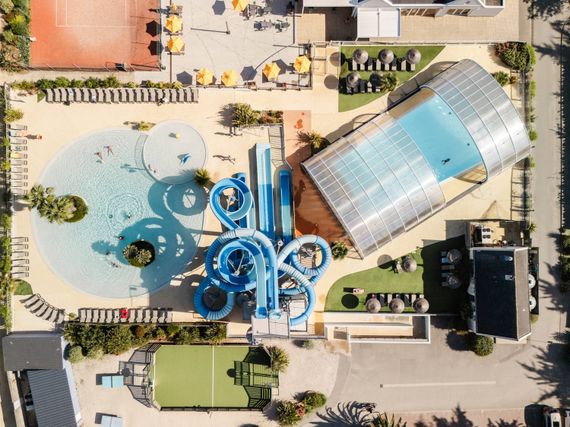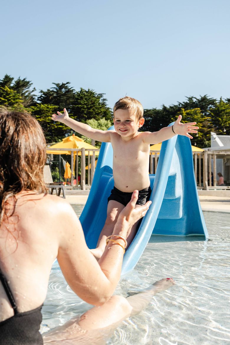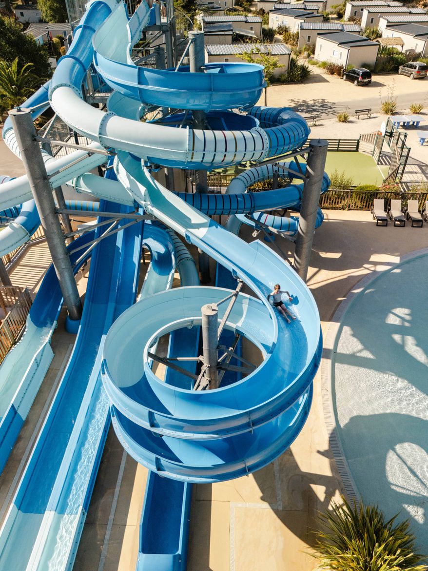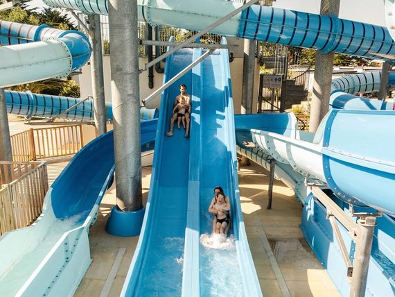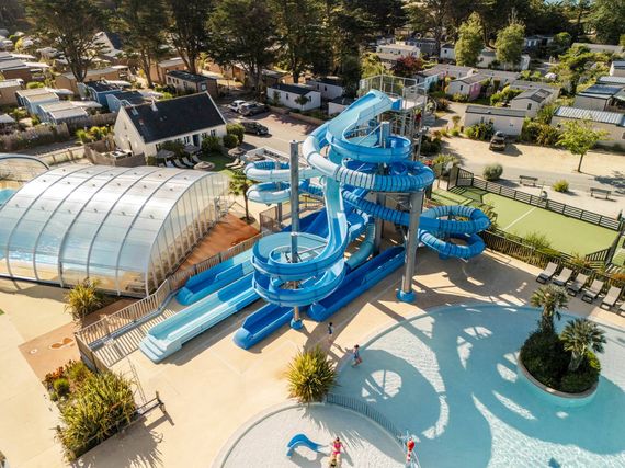 Située à proximité des bassins et des espaces de détente, la zone de toboggans complète parfaitement l’expérience aquatique du camping. Pendant que certains profitent des toboggans, d'autres peuvent se détendre dans la piscine couverte et chauffée, au toit rétractable, ou bien s'accorder une pause allongée, au solarium, sous le soleil breton.